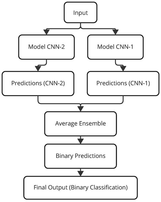 We proposed performing tasks through the entire deep learning technique involves outputting two complementary Convolutional Neural Networks, namely, Deep Feature Extractor (DFE-CNN) and Lightweight Feature Extractor (LFE-CNN), as an ensemble. Therefore, this approach concerns the improvement of each model in terms of their respective and combinatorial robustness and capacity in generalizing [36]. Both models are trained independently for 50 epochs using the Adam optimizer with a learning rate of 0.001 and binary cross-entropy loss function, incorporating early stopping based on validation loss to prevent overfitting, with a batch size of 32.