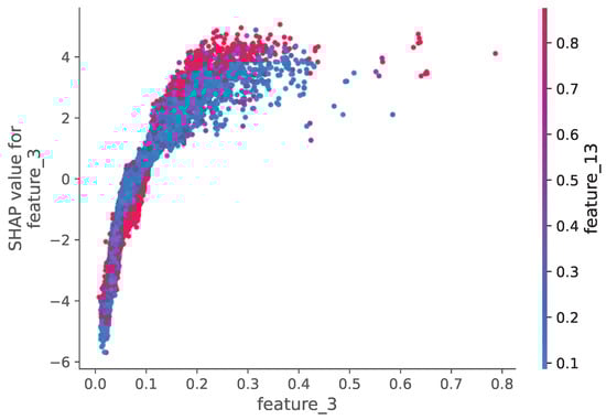 The SHAP summary plot (Figure 20) reveals that policy renewal patterns (feature_3) and customer tenure (feature_13) were the most influential factors in churn prediction. Positive SHAP values for these features indicate they strongly predicted customer retention, while negative values suggested higher churn likelihood. The dependence plots (Figure 21) show non-linear relationships between these key features and churn probability.