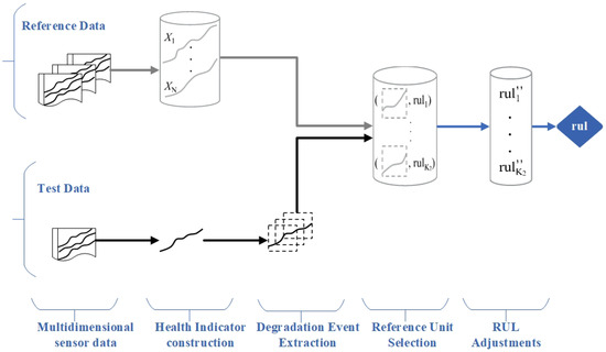 The primary objective of the proposed approach is to identify specific events that represent the degradation of a test system. When a test system undergoes states similar to those already experienced by a reference system, it implies that such events do not occur accidentally. Consequently, they are essential indicators for RUL estimation and are called “degradation events” in the proposed framework.
