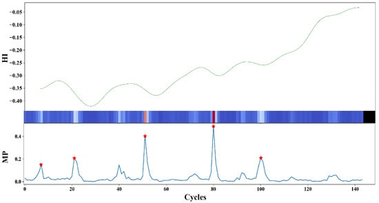 The top section of the figure depicts the HI, and the bottom section shows the matrix profile, with a red (*) indicating the potential DE’s of the system.