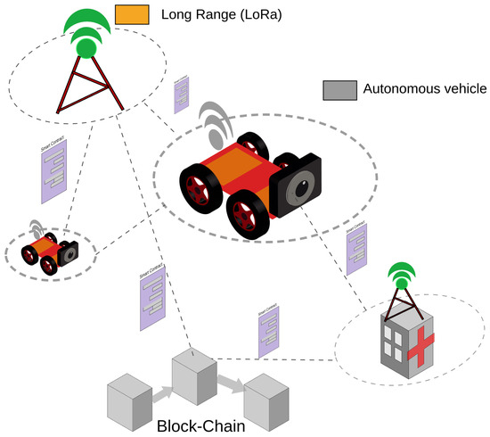 We have presented a framework for autonomous vehicle navigation in a decentralized Blockchain-IoT network system mediated by Smart-Contracts, which allows the inclusion of artificial intelligence in the autonomous navigation process in both closed and open environments. The main contribution lies in maintaining the levels of information security. A highlight is that Smart-Contracts and Blockchain that interact with AV in the different scenarios presented in Section 4 align with the current needs and demands of Explainable Artificial Intelligence (XAI, [37]), providing an additional layer of transparency, automation, security, and flexibility in the implementation of AI models [38,39]. In this context, the concept of explainable is justified, since the interaction with smart contracts allows human agents, both owner and human authority, to more clearly interact with autonomous agents exchanging information in a secure manner, without explaining technical elements of the operation of artificial intelligence when requesting or exchanging information.