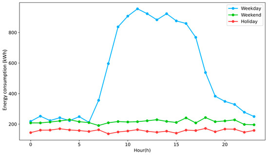 Figure 3 illustrates the differences in energy consumption patterns across weekdays, non-working days, and holidays, highlighting the variations in energy usage among these categories. By comparing the load curves for weekdays, non-working days, and holidays, the subplot reveals the influence of occupancy and operational patterns on energy consumption.
