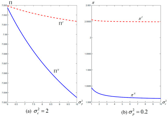 Proposition 5 shows that the port is motivated to adopt blockchain technology only when its own forecast accuracy is large enough. This result is not difficult to understand. When both parties participate in blockchain technology, forecast information is exchanged transparently on the platform, triggering a twofold informational effect for the port. On the one hand, if the port’s forecast accuracy is low, access to the carrier’s more reliable signal enables corrective adjustments in service capacity, thereby improving its profits. On the other hand, when the port already possesses a superior forecasting accuracy, incorporating a noisier signal from the carrier yields limited value—and may even degrade decision quality. Therefore, it can be found that the port will adopt blockchain technology only when its own forecast accuracy is not high, because it may hope to obtain some information value from the carrier. Proposition 5 also shows that the threshold increases as the variance of the carrier’s prediction accuracy increases. This is because when the carrier’s forecast accuracy is low enough, the port is more reluctant to adopt blockchain technology.
