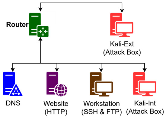 - Yamin, M.M.; Katt, B.; Gkioulos, V. Cyber ranges and security testbeds: Scenarios, functions, tools, and architecture. Comput. Secur. 2020, 88, 101636–101694. [Google Scholar] [CrossRef]