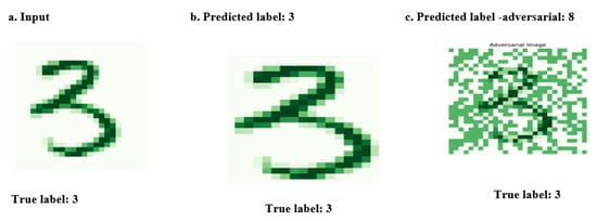 Adversarial attacks [,] pose severe security threats in the fields of machine learning, deep learning, and other artificial intelligence domains. These attacks are often targeted against AI-based computer vision systems, which are mainly based on deep neural models trained on raw data. These systems can be easily fooled either as targeted [] or untargeted [,] by modifying input images in a way that is not visible to the average system user. This can be achieved through the generation of an adversarial example that introduces small perturbations to the original image while maintaining its visual similarity to the human eye []. Adversarial machine learning includes a range of attack methods, such as adversarial examples, poisoning attacks [], extraction attacks [], inference attacks [], and evasion attacks []. In the context of autonomous vehicles where image detection is pivotal concern, researchers [,] have presented an instance of adversarial attack, which represents a notable hazard to the functionality of deep neural networks within such vehicles. The CW, FGSM, and PGD are adversarial machine learning attacks that have been used in the distortion of image datasets as in [,,] by attackers. Generally, previous studies in different domain and image classification have acknowledged the effectiveness of these attacks against adversarial defense strategies, especially the Carlini– Wagner method.