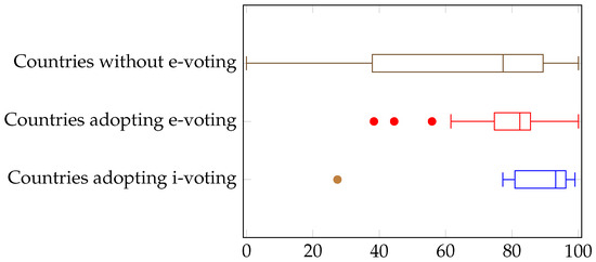 Brazil was among the leading nations in the adoption of electronic voting. The decision to adopt electronic voting was made due to numerous cases of fraud and a high illiteracy rate. Since 1994, EVMs have been implemented, with 35 million voters, i.e., 33% of the population, already utilizing them during the 1996 elections. Electronic voting in Brazil has been conducted in all polling stations since 2000, with no major issues reported [39]. With the use of EVMs, Brazilian voters need only enter their candidate’s number to cast their ballot. The electronic voting machines utilized in Brazil do not have network hardware but require a connection to a computer for the transmission of results to the national authority responsible for counting. No paper record is generated. Overall, Brazilians express satisfaction with the system, and no instances of fraud or significant issues have been reported [40]. Furthermore, a study indicated that if internet voting were to be implemented in Brazil, this would lead to an 8.9% increase in voter turnout [41].