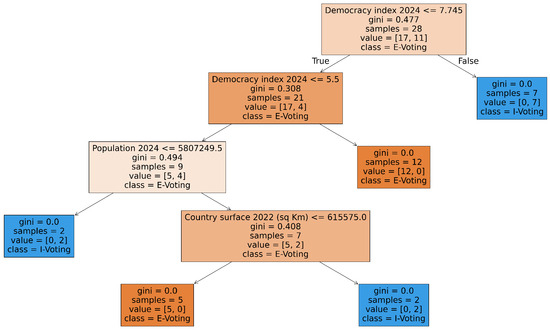 Contribution of This paper compared with prior work: The existing literature on electronic voting can be broadly grouped into three streams: studies proposing or assessing specific technologies, analyses focused on adoption within individual countries or regions, and survey works examining adoption trends from a broader perspective. However, most prior contributions are either dated, region-specific, or limited to qualitative assessments. Notably, comprehensive, up-to-date quantitative studies at the global scale—especially those employing machine learning techniques to predict adoption—remain scarce. This paper contributes to closing this gap by (i) providing a global and recent dataset integrating socio-economic and political factors; (ii) offering a comparative analysis across all countries rather than limited case studies; and (iii) applying predictive models (decision trees and random forests) to systematically assess which features most influence e-voting and i-voting adoption. This multi-faceted contribution advances the field by combining data-driven insights with global coverage, an approach not yet fully explored in prior publications.