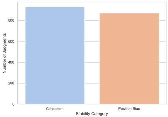 In the first analysis, each model pair was evaluated twice, once with responses ordered as A–B and again as B–A, under identical prompt and perturbation conditions. We categorized each comparison into one of three stability classes: