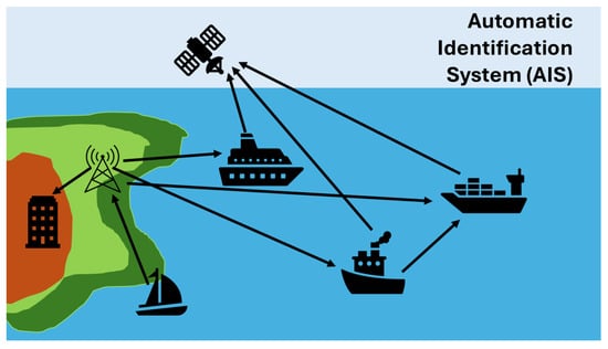 An AIS (Figure 2) is required to autonomously transmit and receive essential navigational and safety-related data that may include the identity, type, position, direction, and speed of the vessel to manage maritime traffic effectively and safely, even when the vessels are not within visual range of each other. Furthermore, AIS also facilitates seamless data exchange between ships and ports, thereby enhancing maritime situational awareness and operational safety [31].