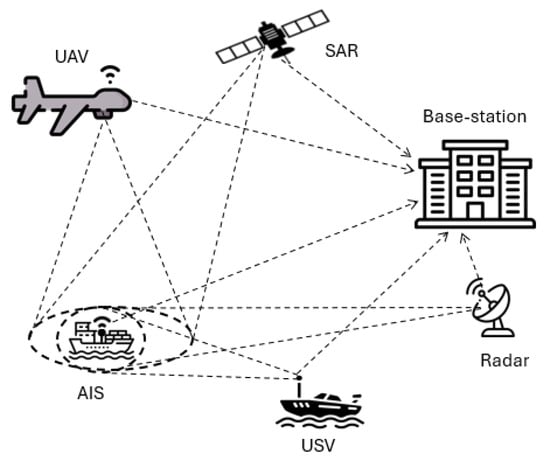 In deep learning techniques, multimodal data fusion approaches (as illustrated in Figure 3) for efficient maritime security can be used where satellite, UxV, radar, and AIS data are combined [33]. It enables insights to be drawn from multiple data sources, resulting in more accurate and valid predictions.