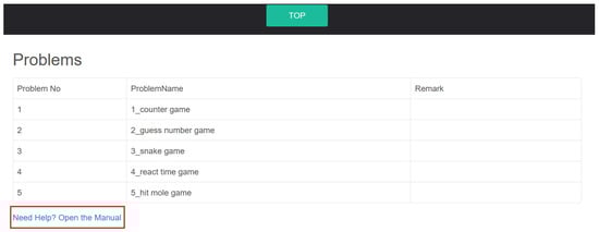 The Web Programming Learning Assistant System (WPLAS) was developed based on the Programming Learning Assistant System (PLAS) [23]. PLAS supports a wide range of programming languages (e.g., C, C++, and Java) through GUP, VTP, BUP, CMP, EFP, and CWP) for self-learning. WPLAS continues this architecture but emphasizes client-side Web programming and introduces a new, more complex problem format.