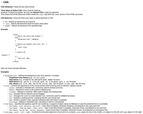 - HTML Structure and Syntax: ChatGPT sometimes generates too few HTML tags, which can make the structure confusing or harder to read. This happens because it was trained on a wide variety of Web content, each with different coding styles. In contrast, our algorithm intentionally blanks either the starting tag or the ending tag to help students learn and recognize the correct HTML structure and the tag names more clearly.