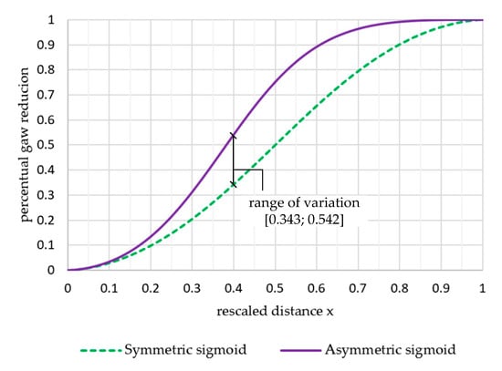 f_distance applies a reduction to the initial gaw based on the agent’s proximity to the nearest textile collection bin. This function captures the deterrent effect of physical distance, representing accessibility-related behavioural friction.
