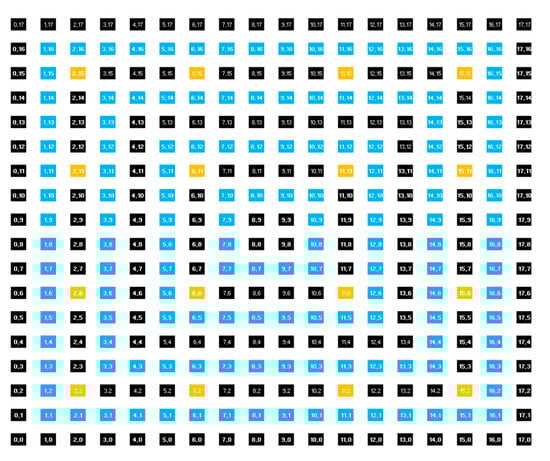 The urban layout, in which the textile waste disposal and collection processes occurs, is built on a 2-dimensional square grid of equally spaced nodes, where each node represents the barycentric point of a city block or of a neighbourhood. Also, a graph-based topology connects urban blocks, allowing for realistic modelling of travel and routing operations using shortest-path algorithms.
