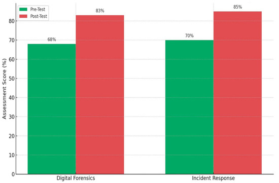 This shows that AI is helpful for learning cyber science while also boosting other educational results. Figure 3 below shows that there is a notable improvement in skill-based assessments post-test as compared to pre-test.