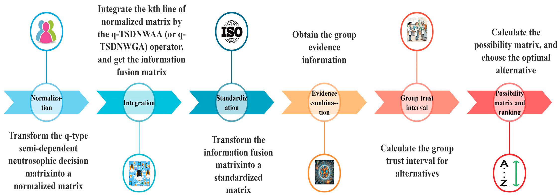 Section 4, a group decision-making algorithm is proposed, combining the evidence information fusion method for q-type semi-dependent neutrosophic numbers and the q-TSDNWAA (or q-TSDNWGA) operator. In