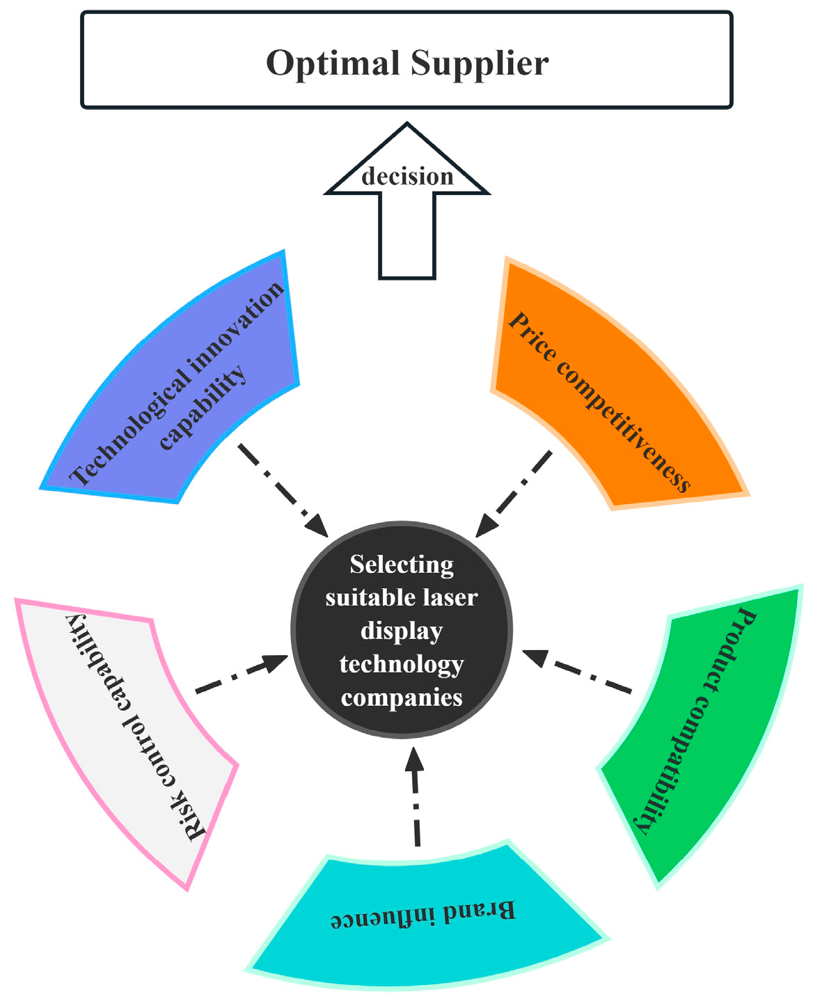 In this section, an investment appraisal project is employed to demonstrate the application of the proposed decision-making approach, as well as the validity and effectiveness of the proposed approach. The Chinese auto market, as one of the largest and most innovative strategic areas globally, is fully embracing intelligent transformation. As a key element for achieving differentiation in smart vehicles, the smart cockpit has become a highly sought-after area in the automotive industry. This trend generates new demands for in-vehicle optics and stimulates innovative applications of laser technology in this field. With the development of intelligent vehicles, there has been a notable increase in industrial cooperation, with deep collaboration between automotive companies and tech firms. Some car manufacturers prefer to choose partners with global advantages to provide smart vehicle solutions. Therefore, in the field of smart cockpits, selecting suitable laser display technology companies for collaboration will be a focus and challenge for automotive enterprises. A certain automotive company, after thorough market research and analysis, selected five technology companies {