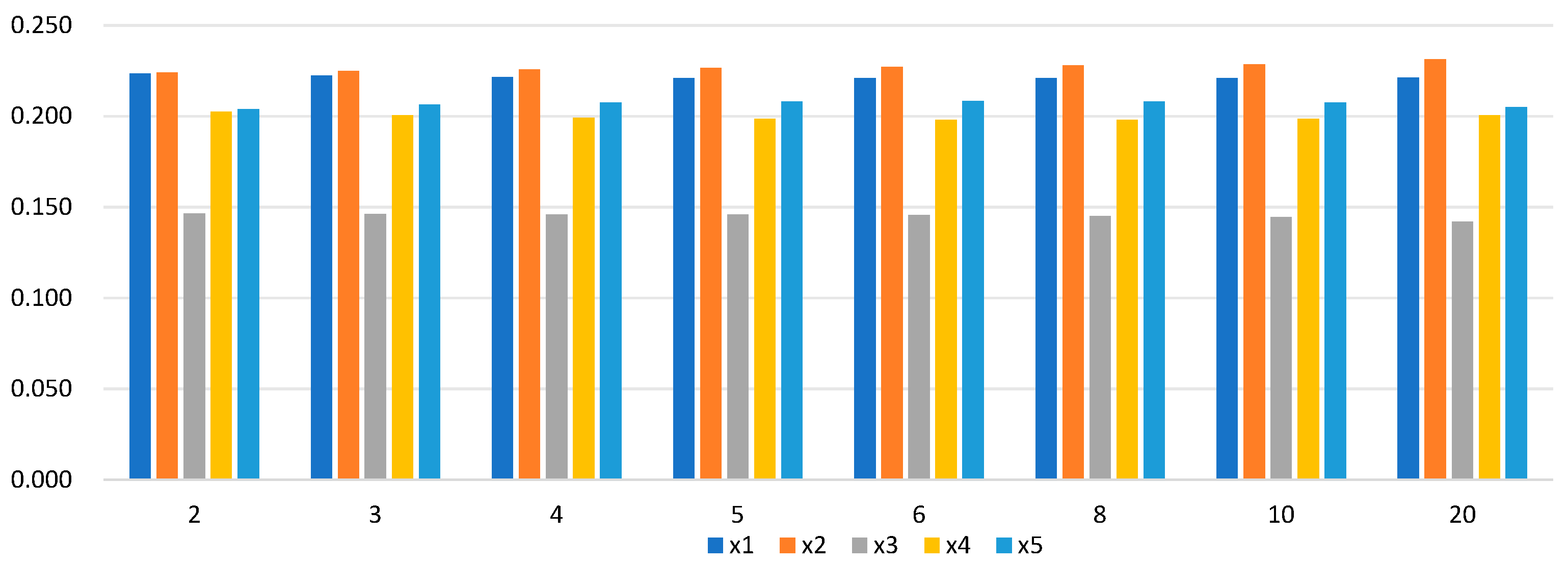 w = (0.15, 0.25, 0.25, 0.15, 0.2)
