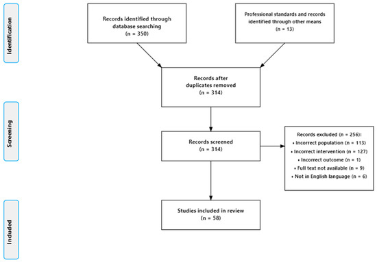 To identify the potentially relevant literature, the PUBMED, CINAHL, and Web of Science bibliographic databases were searched from 1 January 2020 to 28 February 2025. This window ensured that the most recent publications were captured, while recognising the influence of the COVID-19 pandemic, which was a major factor in the increased uptake of simulation-based learning, leading to the growing body of research in this area. The selection of databases was chosen based on their comprehensive coverage of the biomedical- and health-related literature, with a focus on education and evidence-based practice. Professional standards from the HCPC [11,18,25,26] and laboratory training approval guidance from the IBMS [27], who accredit undergraduate degrees and pre-registration laboratory training on behalf of the HCPC, were also incorporated, alongside the most recent QAA subject benchmark statement for biomedical science and biomedical sciences [1], to systematically assess the relevance of educational interventions to professional requirements for clinical practice. Upon reviewing the initial studies, a targeted follow-up investigation into the foundational research cited within them was conducted to ensure a comprehensive understanding of the subject matter.