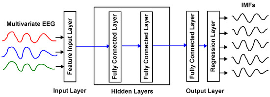 In Figure 1, the structure of a DNN-based surrogate of the MEMD is shown, where the inputs are the EEG channels, and the outputs are the corresponding IMFs.
