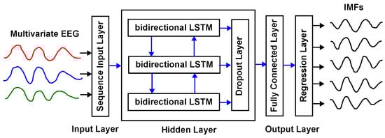 To learn the mapping from EEG signals to their corresponding IMFs, we trained a bidirectional LSTM-based neural network in MATLAB by considering the MEMD and the NA-MEMD decompositions. The model is defined as follows: