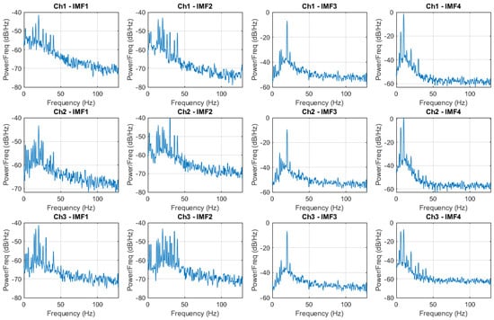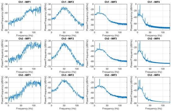 In Figure 7 is shown the PSD of the predicted IMFs based on an LSTM surrogate of the MEMD of Figure 4.