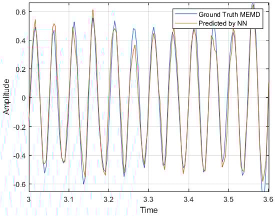 In Figure 8 is shown a zoom of IMF 3 of Channel 3 comparison between the original IMF (ground truth) and the predicted IMF decomposition based on an LSTM surrogate of the MEMD.