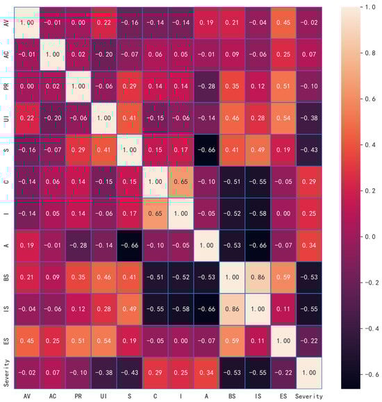 Preprocessing serves as a critical phase in natural language processing, transforming raw text into structured and standardized formats [33]. The subsequent clustering analysis suggested visualizing the processed data through heatmaps to examine relationships between individual CVSS v3.1 vector metrics and multi-dimensional CVSS severity scores. These visualizations reveal the contribution weights of each vector metric toward the final CVSS scores [34], reflecting their criticality in severity assessment. This preprocessing methodology enhances semantic comprehension for subsequent analytical models. Word preprocessing in our framework involves two sequential operations: