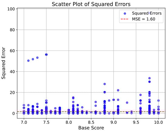 In CVSS, vulnerabilities with base scores in [7, 10] are judged as high-risk vulnerabilities. The model proposed has a low square error in judging the severity level of high-risk vulnerabilities, and the prediction effect is excellent, as shown in Figure 8. This shows that the model proposed can achieve a good assessment effect on high-risk vulnerabilities without any manual intervention, significantly improving the speed and accuracy of security detection.