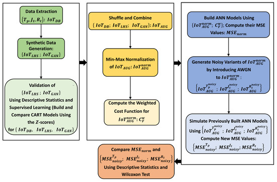 - Step 7: Build ANN models (see Section “Artificial Neural Networks (ANNs)”) using as the explanatory variables and as the corresponding response variables ∀ IoT network scenarios. Then, compute the MSE values for the respective ANN models and store them in ;