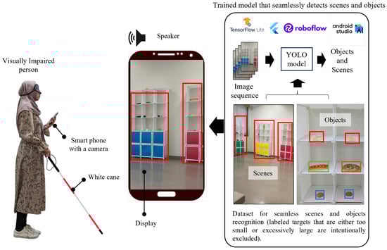 The fourth application represents the proposed system, which constitutes the core contribution of this study. We refer to this as the scene-based application. It integrates both scene and object recognition to deliver a comprehensive understanding of the environment. The system features seamless scene–object integration and employs a prioritization mechanism to convey the most contextually relevant information. Unlike previous applications, it does not require users to predefine target objects and ensures that surrounding objects are also considered. This results in a more flexible, informative, and user-friendly experience.