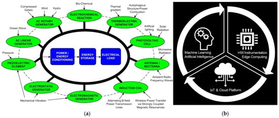 Energy harvesting AIoT. (a) Various energy harvesting technologies. (b) Functional blocks of AIoT.