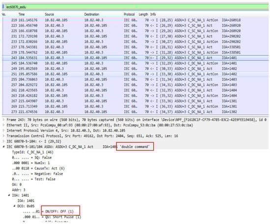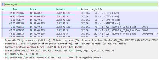 - Erdődi, L.; Kaliyar, P.; Houmb, S.H.; Akbarzadeh, A.; Waltoft-Olsen, A.J. Attacking Power Grid Substations: An Experiment Demonstrating How to Attack the SCADA Protocol IEC 60870-5-104. In Proceedings of the ARES ’22: Proceedings of the 17th International Conference on Availability, Reliability and Security, Vienna, Austria, 23–26 August 2022; pp. 1–10. [Google Scholar] [CrossRef]