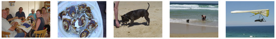 - Xu, K.; Ba, J.; Kiros, R.; Cho, K.; Courville, A.C.; Salakhutdinov, R.; Zemel, R.S.; Bengio, Y. Show, Attend and Tell: Neural Image Caption Generation with Visual Attention. In Proceedings of the International Conference on Machine Learning, Lille, France, 7–9 July 2015. [Google Scholar]