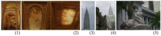 Sequence of images used by CRCN in a story. (1) One of the hallway arches inside of the library. (2) As we walked through the library I noticed an exhibit called lunch hour nyc it captured my attention as I had also taken a tour of nyc food carts during my trip. (3) Here is the top of the Chrysler building everyone’s favorite skyscraper in new york. (4) After leaving the nypl we walked along 42nd st. (5) We walked down fifth avenue from rockefeller centre checking out the windows in saks the designer stores and eventually making our way to the impressive new york public library. Adapted from [22].
