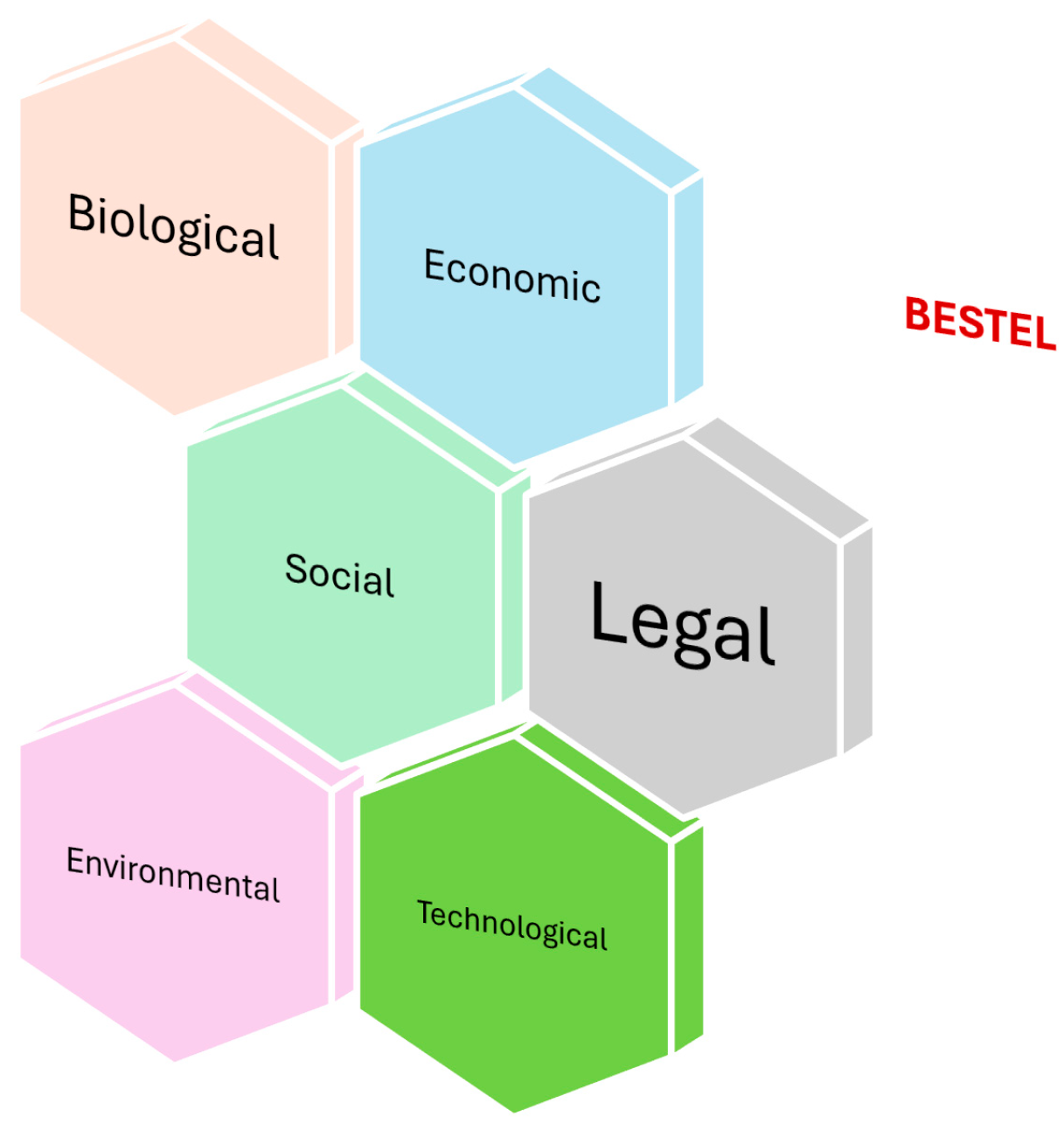 In response to this gap in the literature, we propose an adaptation of the original PESTEL model by replacing the political dimension with a biological dimension, thereby forming what we refer to as the BESTEL framework. This revised model includes biological, economic, social, technological, environmental, and legal factors (