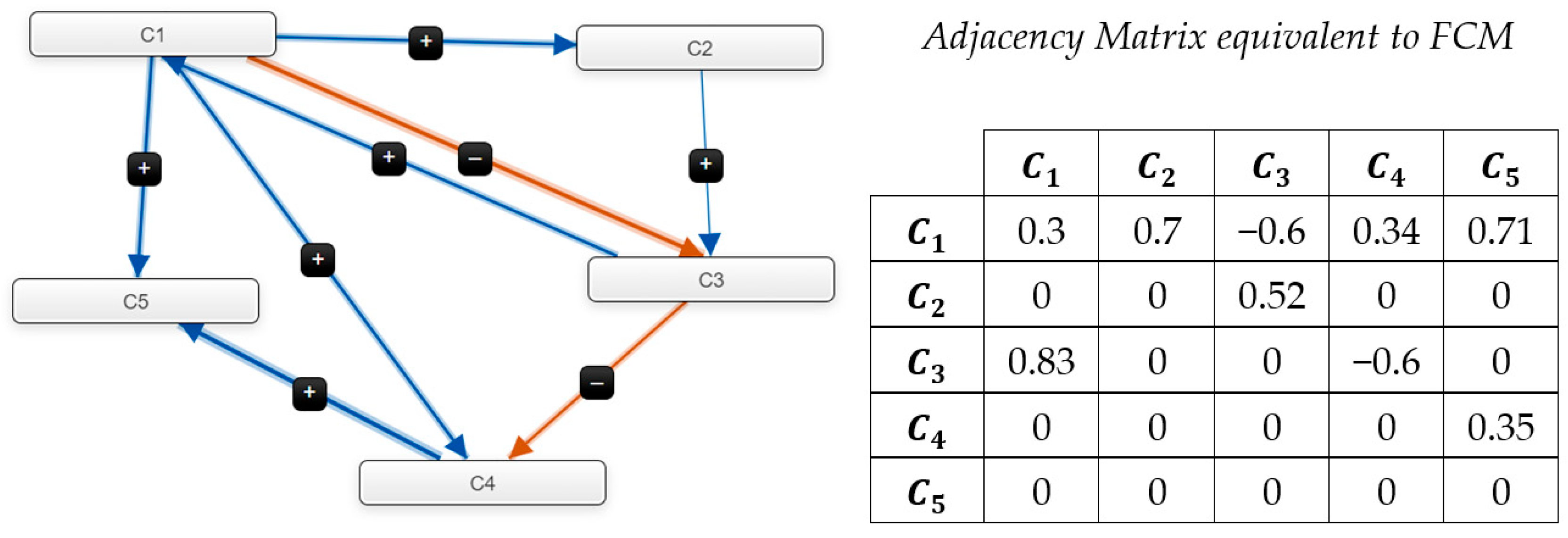 34]. A positive weight indicates a causal increase, a negative weight indicates a causal decrease, and zero indicates no influence.