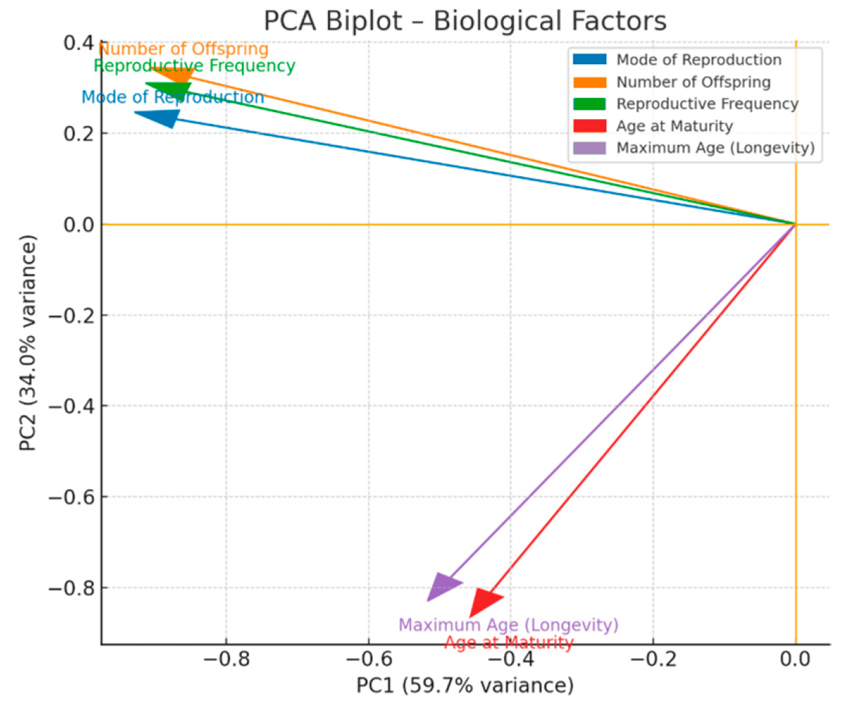 Factor | PC1 (Reproductive Capacity) | PC2 (Life-History Longevity) | |