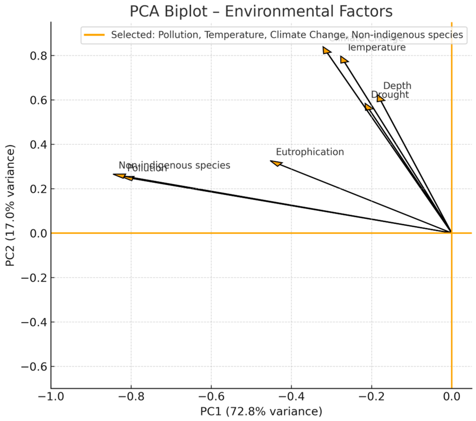 Environmental factors encompass the physical and ecological components of the proposed ecosystem. This includes aspects like pollution, climate change, non-indigenous species, temperature, depth, drought and eutrophication.