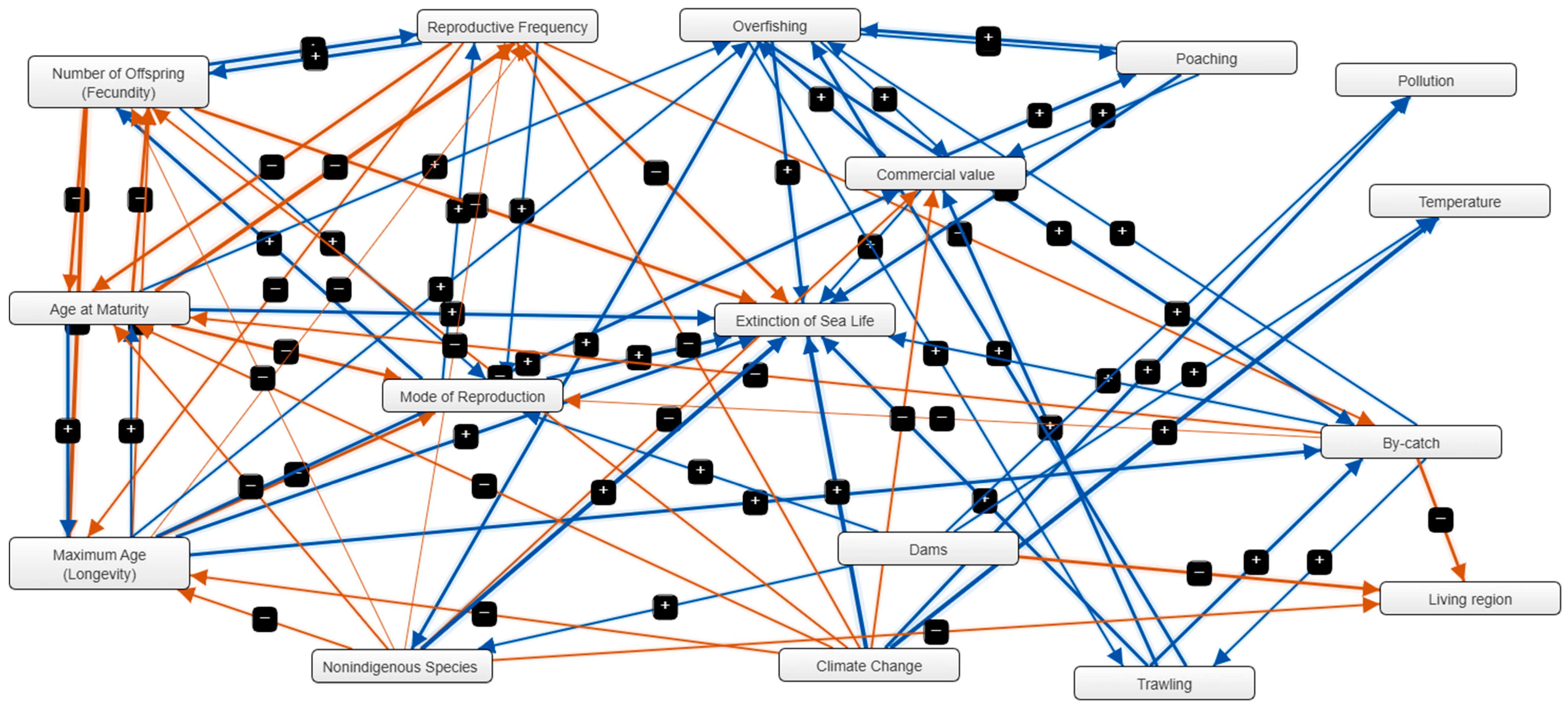 The objective of this study is to investigate the key factors contributing to population declines among species in the Mediterranean Sea. By identifying major threats such as habitat loss, overfishing, pollution, and climate change, we seek to support the development of targeted conservation strategies aimed at mitigating these pressures. While earlier studies have demonstrated the usefulness of FCMs in environmental management [