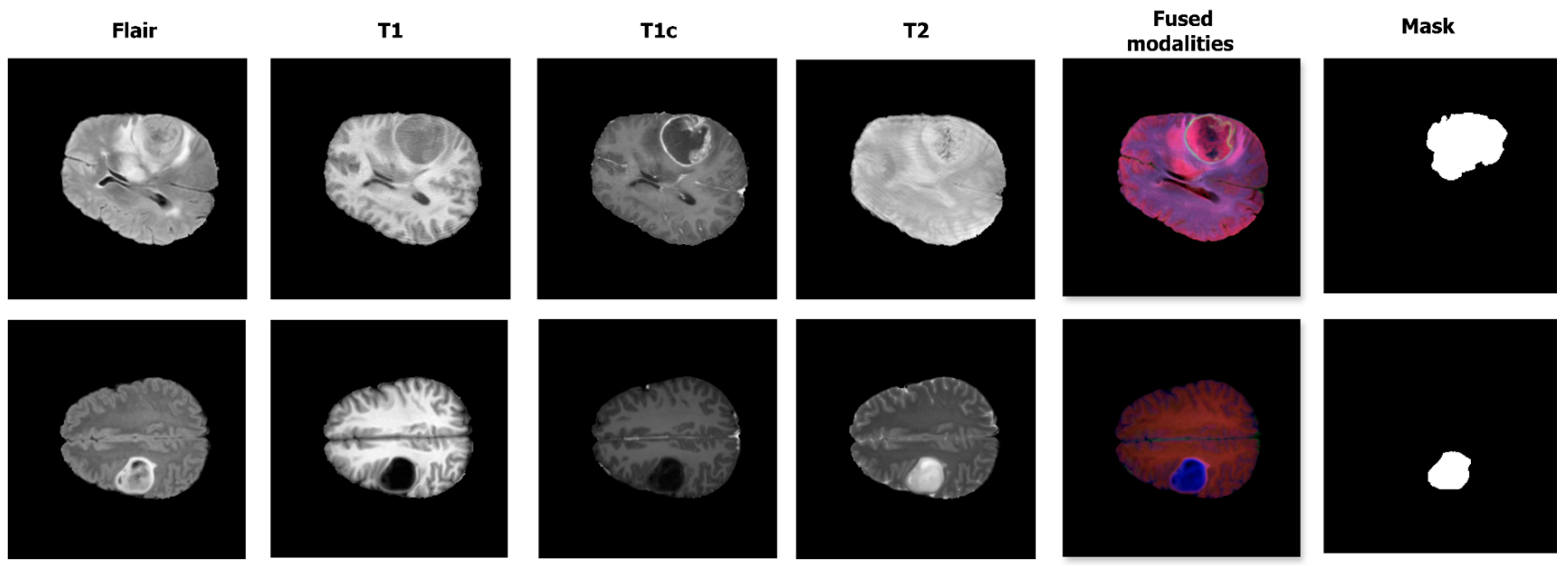 - SyedSajid. Brain Tumor Segmentation (BraTS 2021) Dataset; Kaggle, 2021. Available online: https://www.kaggle.com/datasets/syedsajid/brats2021 (accessed on 19 November 2025).
