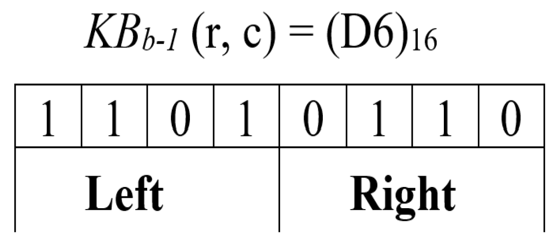 Where Left (KBb−1 (r, c)) and Right (KBb−1 (r, c)) represent the left and right half of a byte in KBb−1 (r, c) as shown in Figure 5 as an example, where Left = (1101)2 = (13)10 and Right = (0110)2 = (6)10.