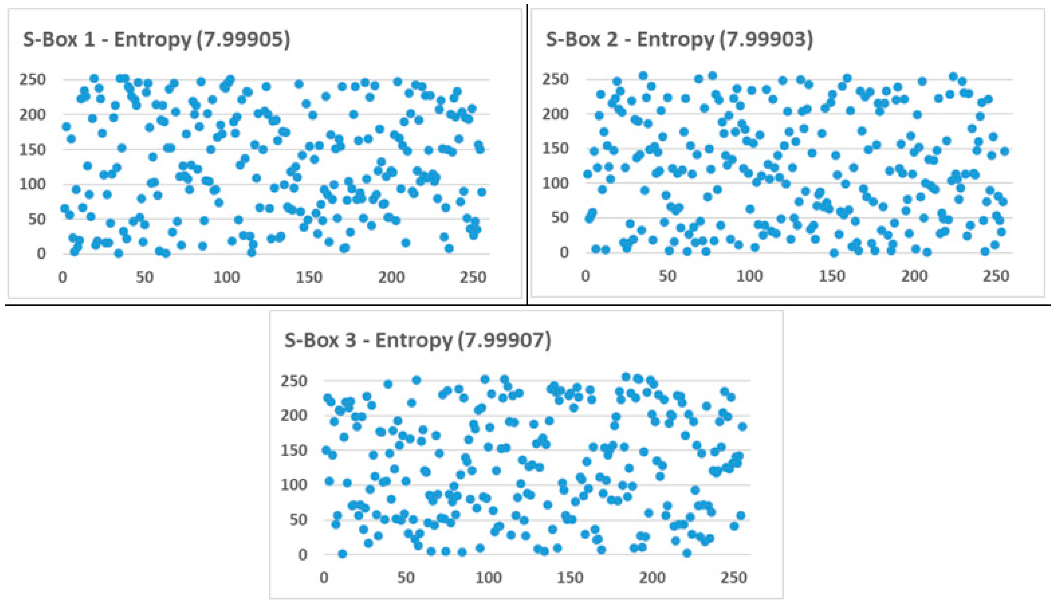 Figure 11. Examples of different S-Boxes with different random distributions of bytes.