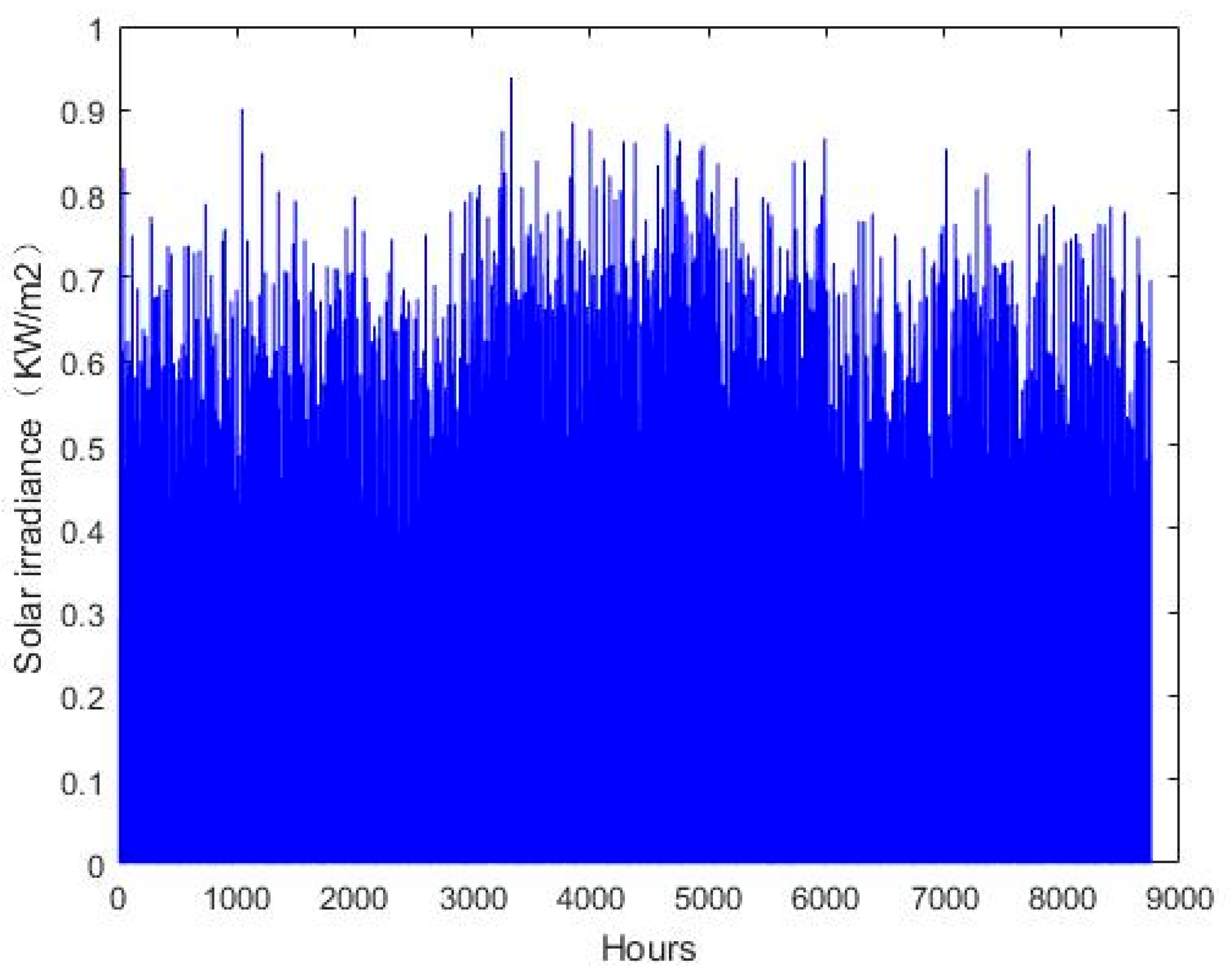 The rest of this paper is organized as follows: in Section 2, the power generation model for each equipment of the system is determined, and the objective functions and constraint conditions for capacity optimization configuration are given. In Section 3, a solution method for the capacity optimization configuration model is provided. Section 4 presents the background data for the example analysis and the scene generation results. Section 5 presents the capacity optimization configuration results. In Section 6, we discuss the method comparison and sensitivity analysis. Finally, the conclusion of this paper is presented in Section 7.