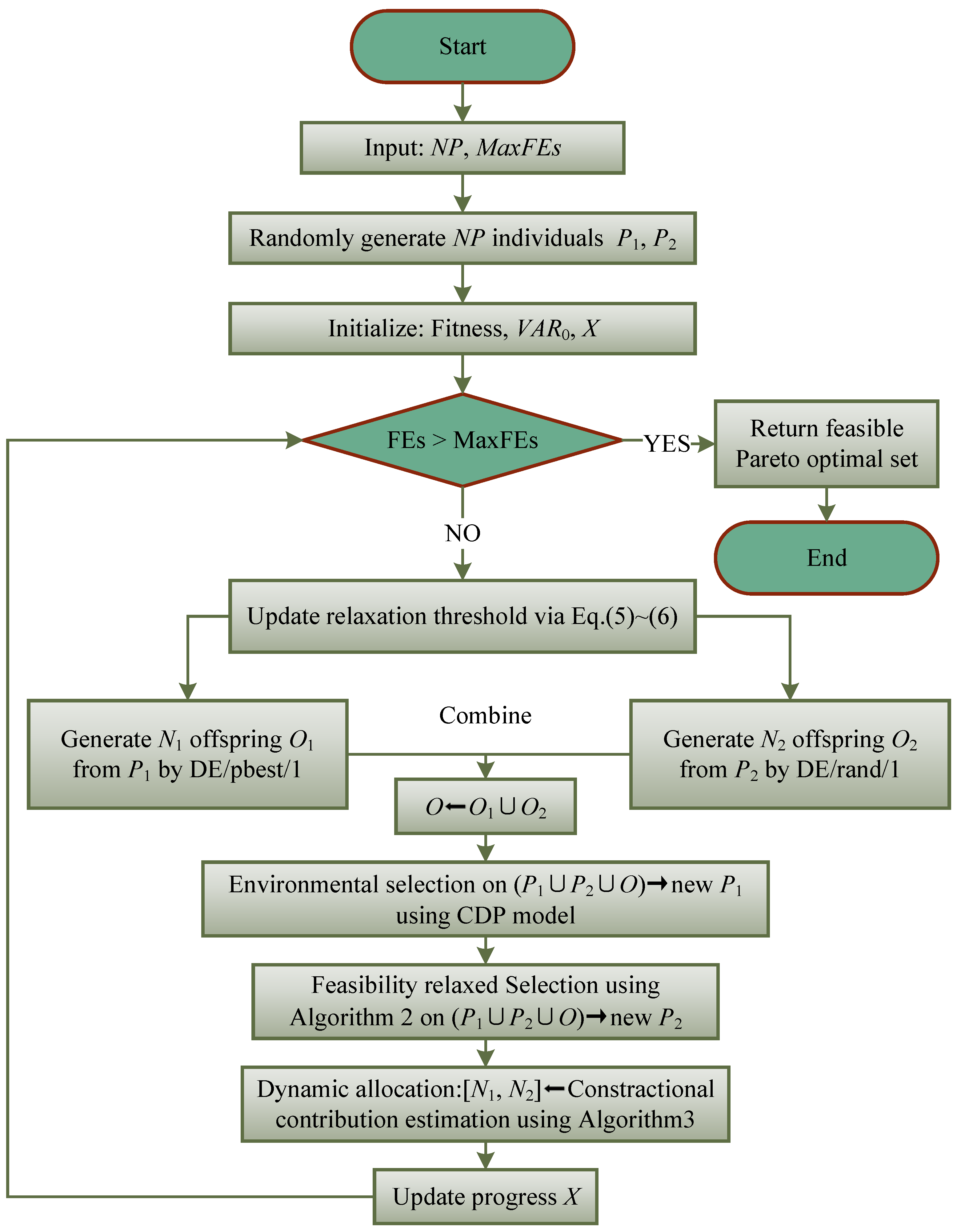 - A dynamic resource allocation mechanism based on shrinking contribution is designed to address the computational configuration challenges in cooperative evolution. By measuring the Euclidean distance shift between parent and offspring populations in the objective space, this mechanism quantifies the effective evolutionary contribution of populations in real-time (where a smaller shift indicates higher potential convergence value). Based on this evaluation coefficient, the algorithm dynamically adjusts the offspring generation ratio, automatically tilting computational resources toward the population demonstrating superior evolutionary performance, thus significantly reducing ineffective resource consumption while guaranteeing search quality.
