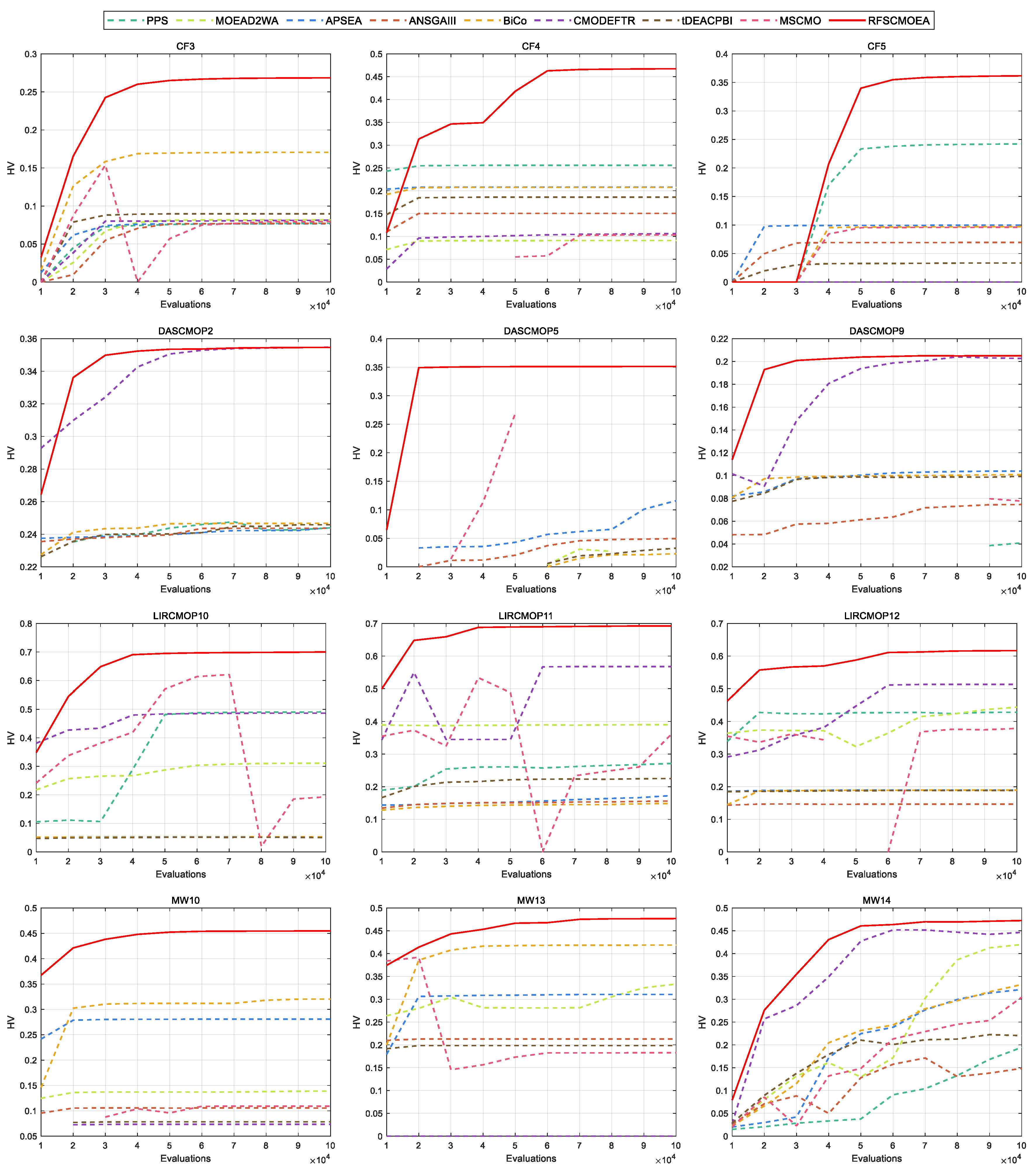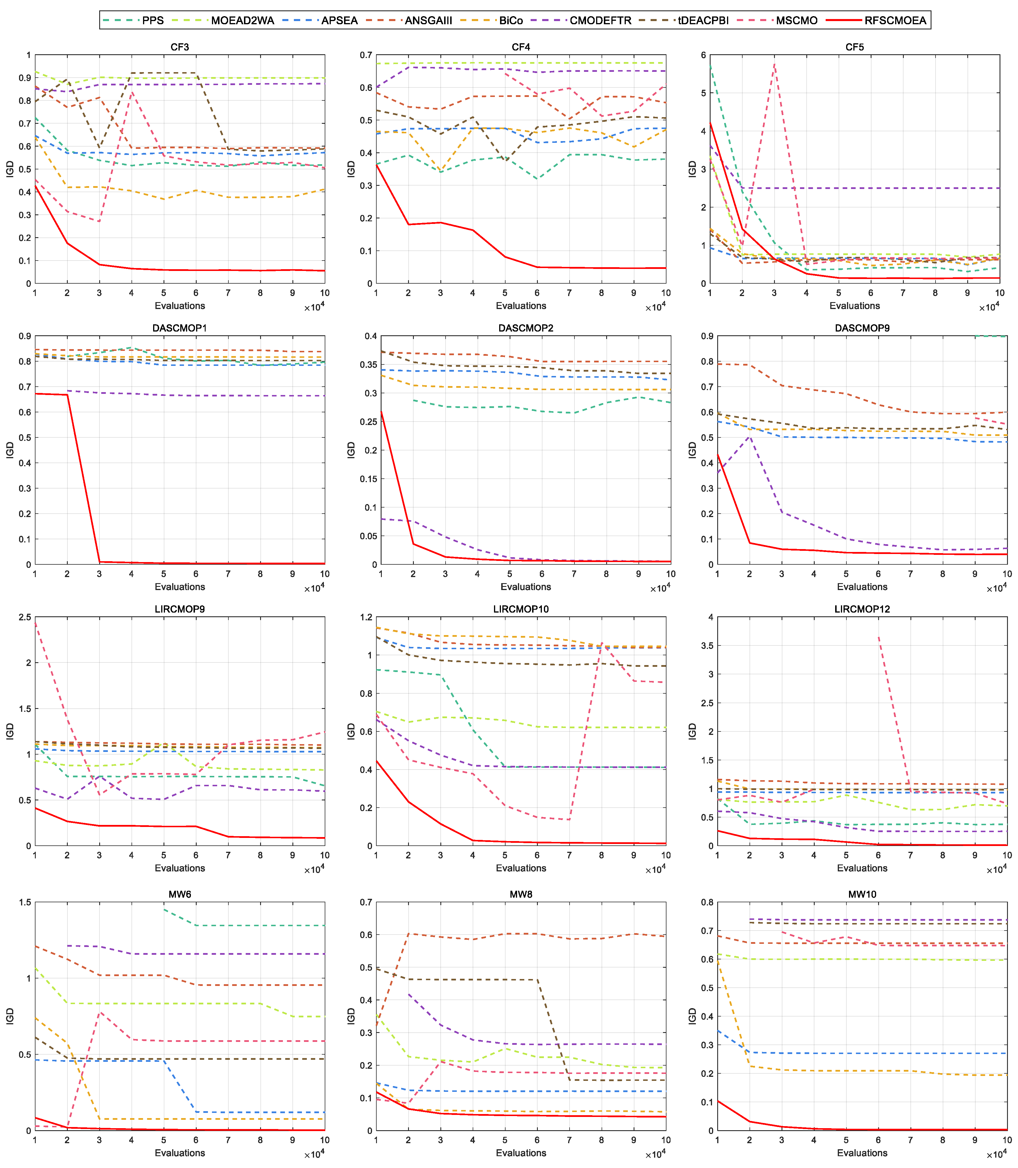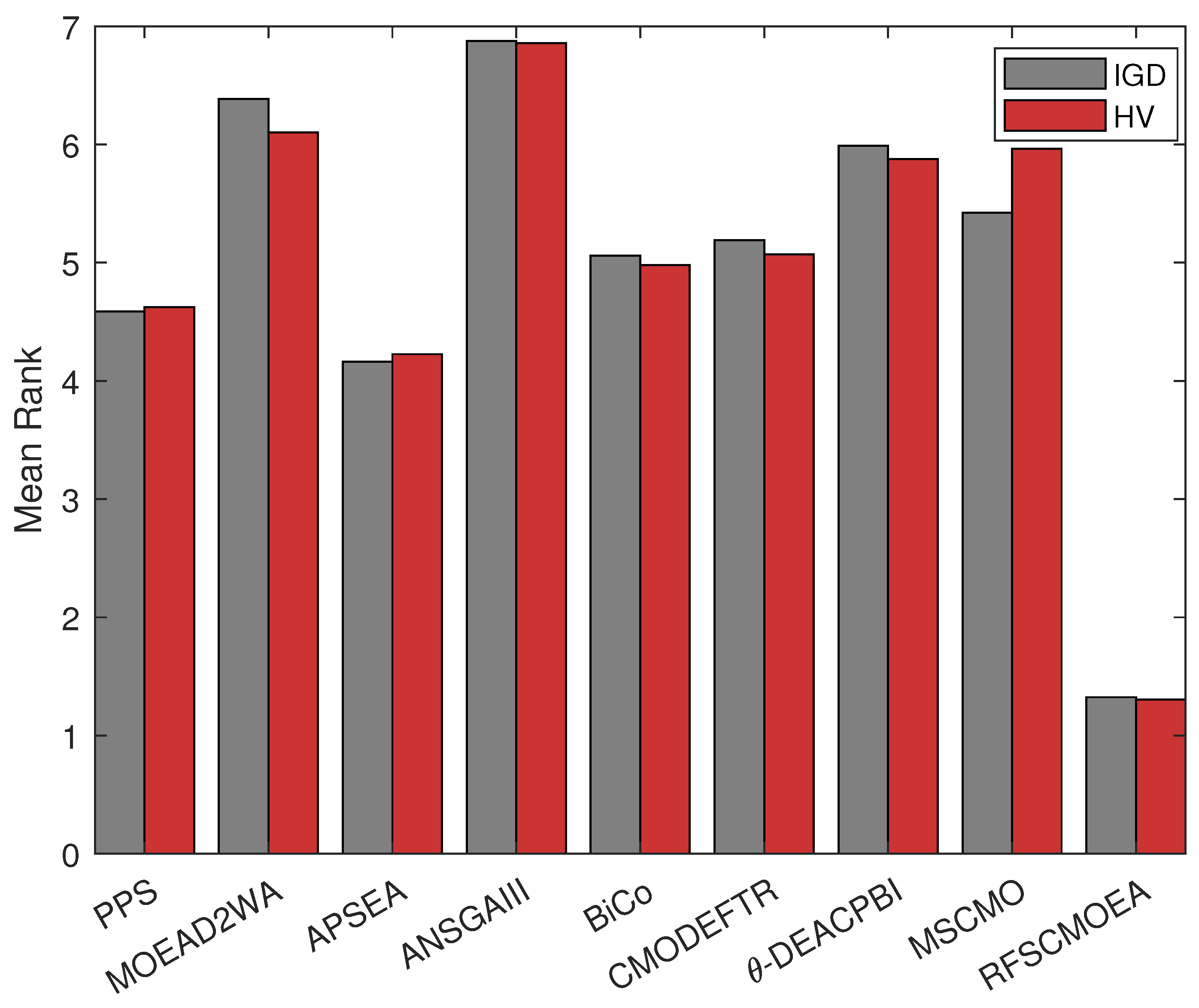 - Comprehensive experiments involving 47 benchmark functions and 12 real-world engineering problems compare the proposed method against seven state-of-the-art CMOEAs. The results demonstrate that RFSCMOEA achieves the most balanced and superior performance across key metrics.