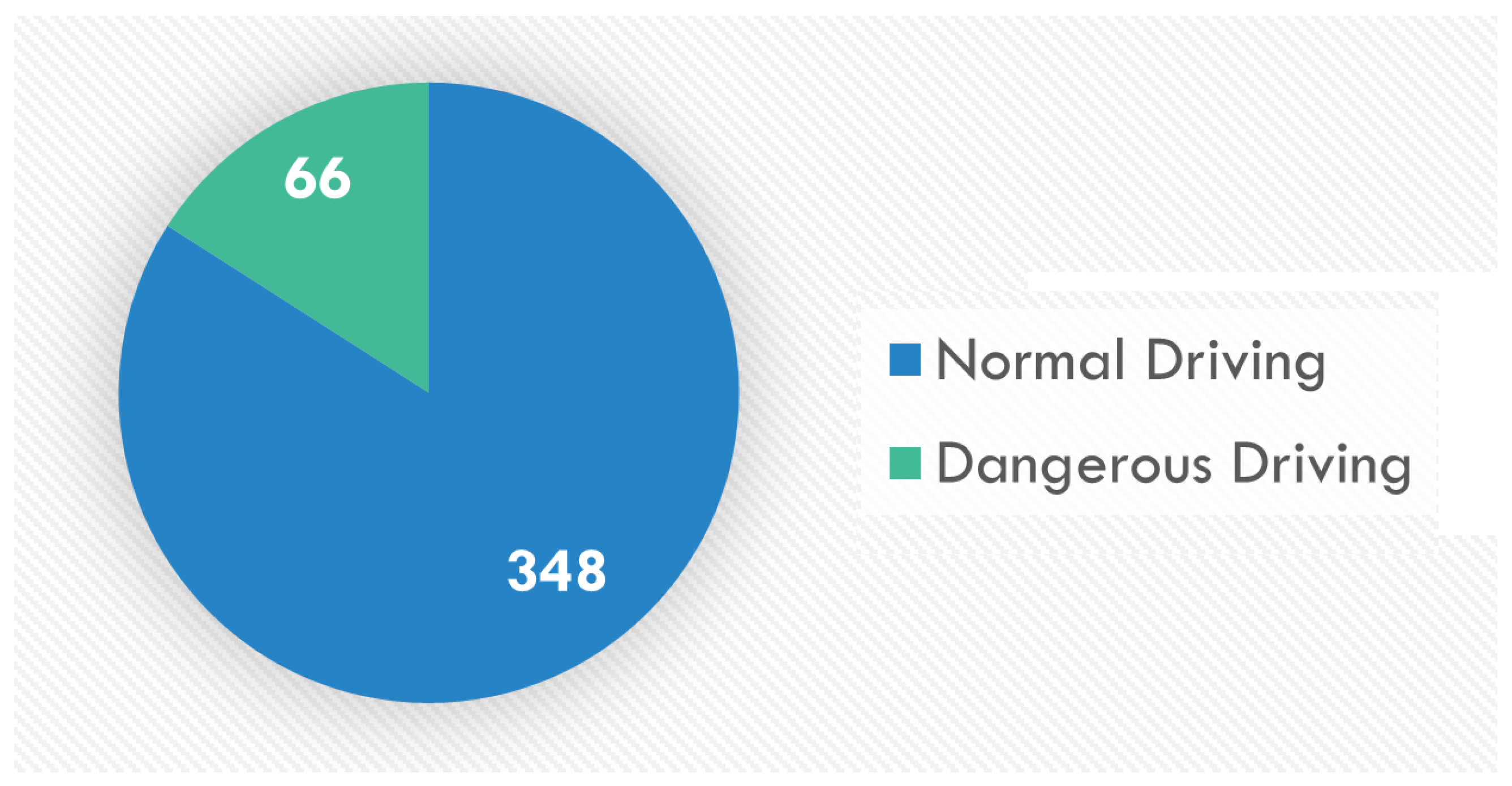 The dataset obtained consists of 18 videos with 414 examples, of which 348 are classed as normal driving and 66 dangerous driving, totaling approximately 45 min of video recording.