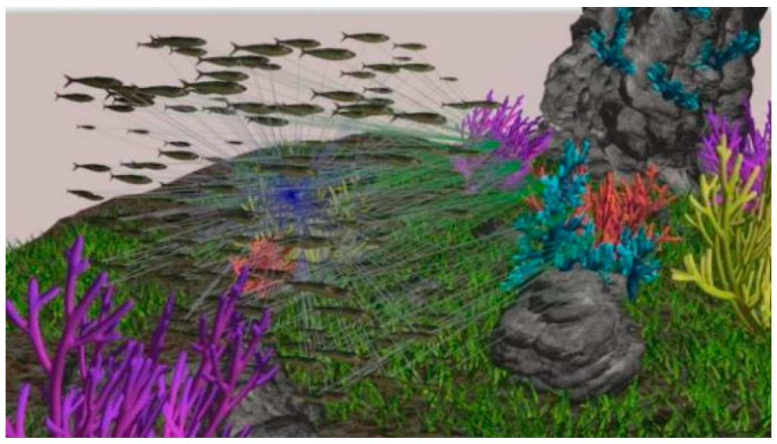 - Reynolds, C.W. Steering behaviors for autonomous characters. In Proceedings of the Game Developers Conference, San Jose, CA, USA, 15–19 March 1999; Volume 1999, pp. 763–782. [Google Scholar]