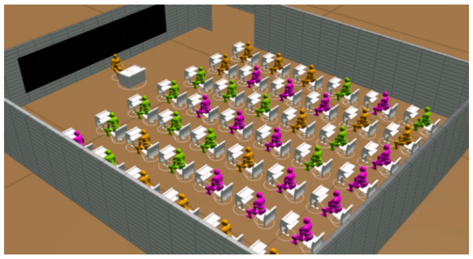 - Loscos, C.; Marchal, D.; Meyer, A. Intuitive crowd behavior in dense urban environments using local laws. In Proceedings of the Theory and Practice of Computer Graphics, Birmingham, UK, 5 June 2003; IEEE: Piscataway, NJ, USA, 2003; pp. 122–129. [Google Scholar]