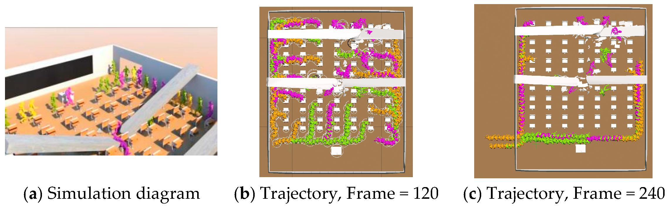 - Ma, Y.; Liu, T.; Liu, Z. Diverse Motions and Responses in Crowd Simulation. Comput. Animat. Virtual Worlds 2024, 35, e70002. [Google Scholar] [CrossRef]